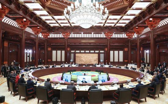 5月15日,“一帶一路”國(guó)際合作高峰論壇在北京雁棲湖國(guó)際會(huì)議中心舉行圓桌峰會(huì),國(guó)家主席習(xí)近平主持會(huì)議并致辭。