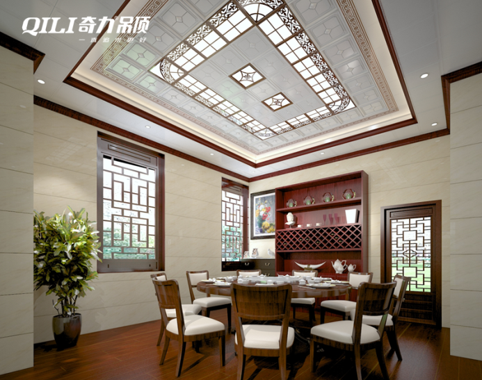 中國(guó)自古在裝飾上就非常講究,不過在新時(shí)代的中式餐廳設(shè)計(jì)上裝飾不要過于濃厚,采用簡(jiǎn)潔的直線條會(huì)更好。裝飾物可選擇具有中國(guó)傳統(tǒng)的元素和風(fēng)格,比如一些中國(guó)結(jié)、花瓶、掛畫等等。