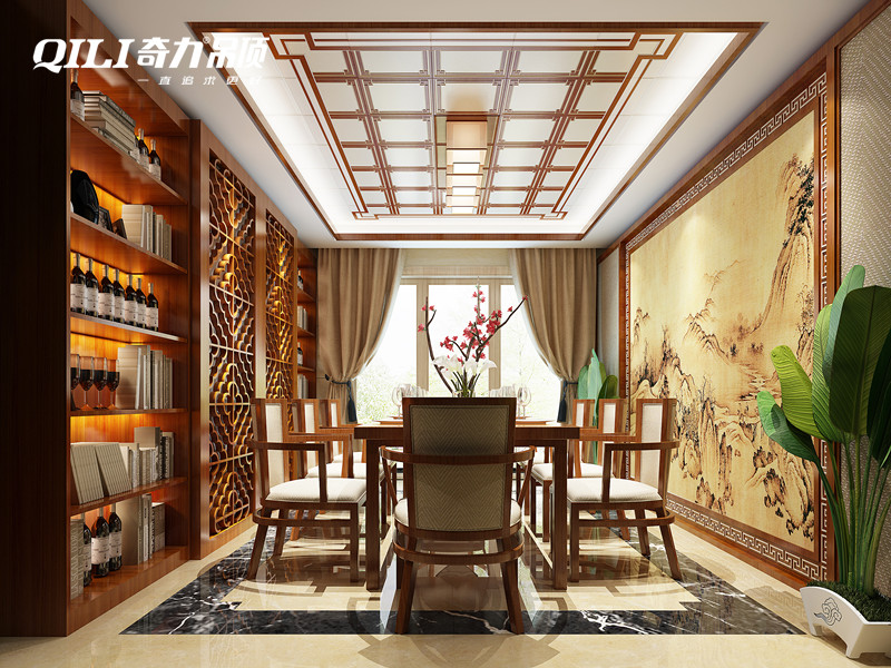新中式餐廳在設(shè)計(jì)的時(shí)候?qū)φw的色調(diào)是比較講究的,一般以深色為主,代表的是深厚以及沉穩(wěn)的底蘊(yùn),與中國(guó)傳統(tǒng)裝修的風(fēng)格比較相統(tǒng)一,富有中國(guó)古典的韻味。